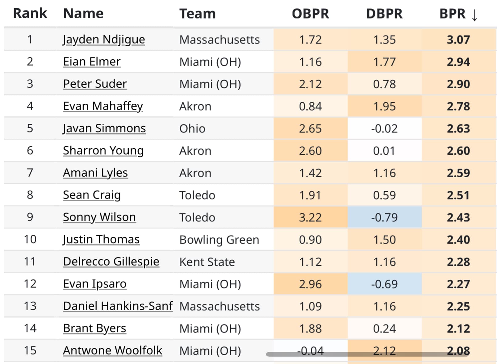 A little surprised to not see Tavari Johnson from Akron or Jackson Pavaletzke from OU not in there. Their defensive metrics must be terrible.