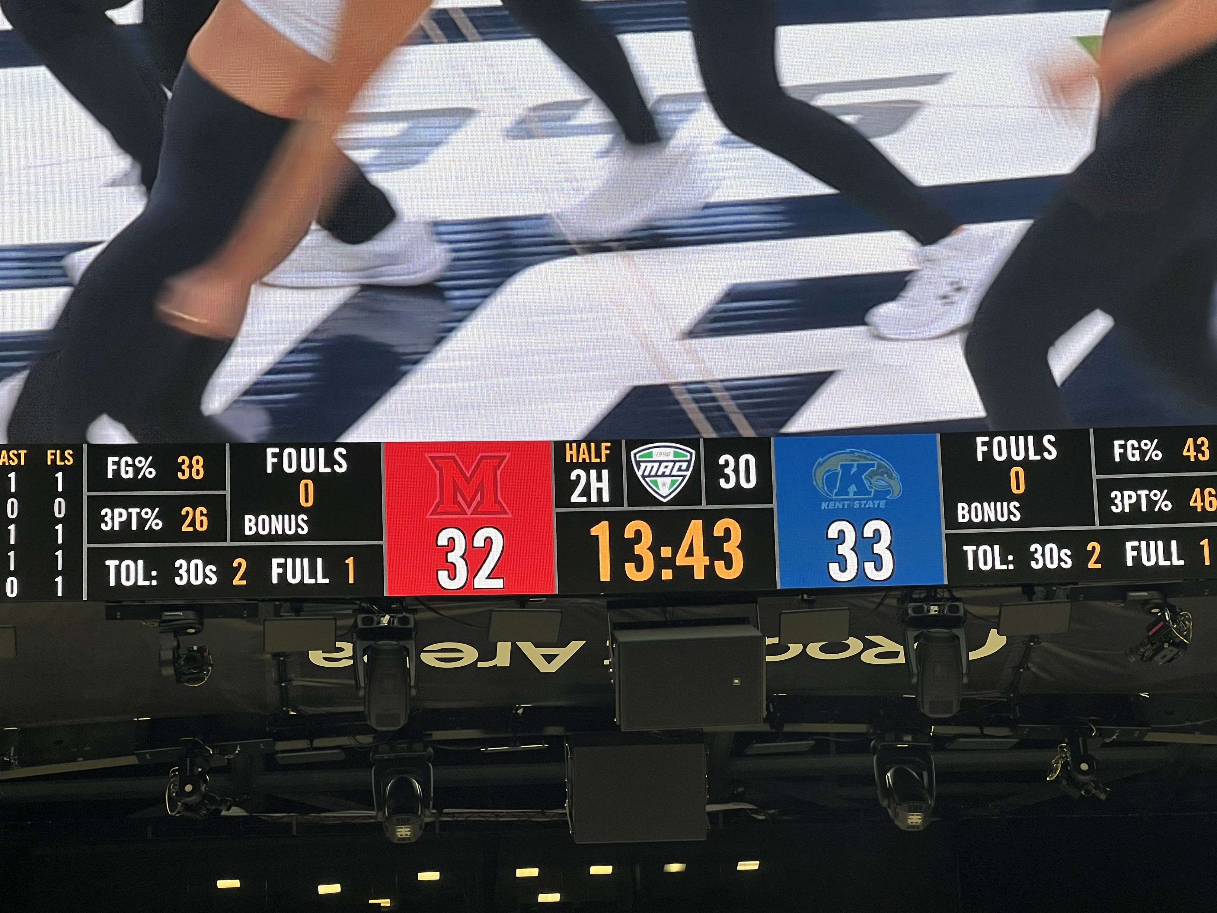 Theyâre playing decent ball, but not cut-down-the-nets ball. From my perspective, they left a lot on the table with sloppy ball-handling and poor footwork in the defensive post, which isnât good since both MAC semifinals tonight have been ref shows. If they can do a better job of taking care of the ball in the second half and clean up their post defense, theyâll be fine. Kent has been focused on stopping Craft from going off, but if they pivot to slowing down Suder, Kam should get some cleaner looks.