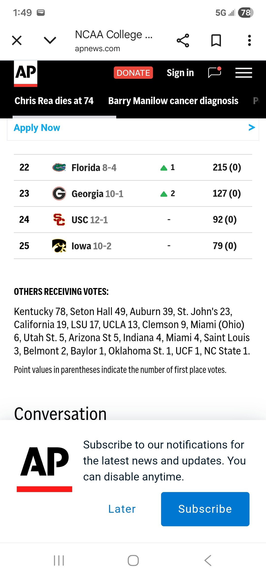 No new AP poll this week. We got a vote in the Coaches’ Poll.