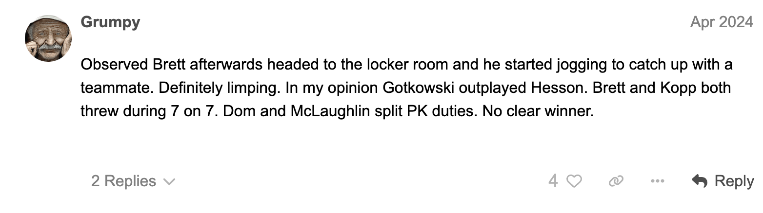 Grumpy called it at the Spring game in 2024 when Gotkowski was just an early enrollee.