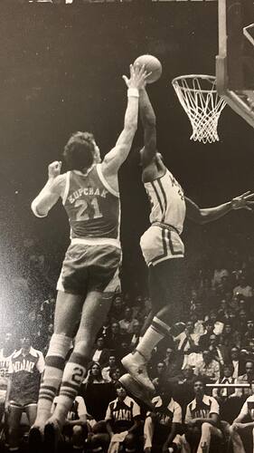 From my MS days…this was always a favorite pic. I’m sure it was a back-pager. Vs. NC. Kupchak was 6-10 and Archie is right there with him! (I’m 80% certain this was Archie. I can’t see his full number). Possibility it is Ayers.