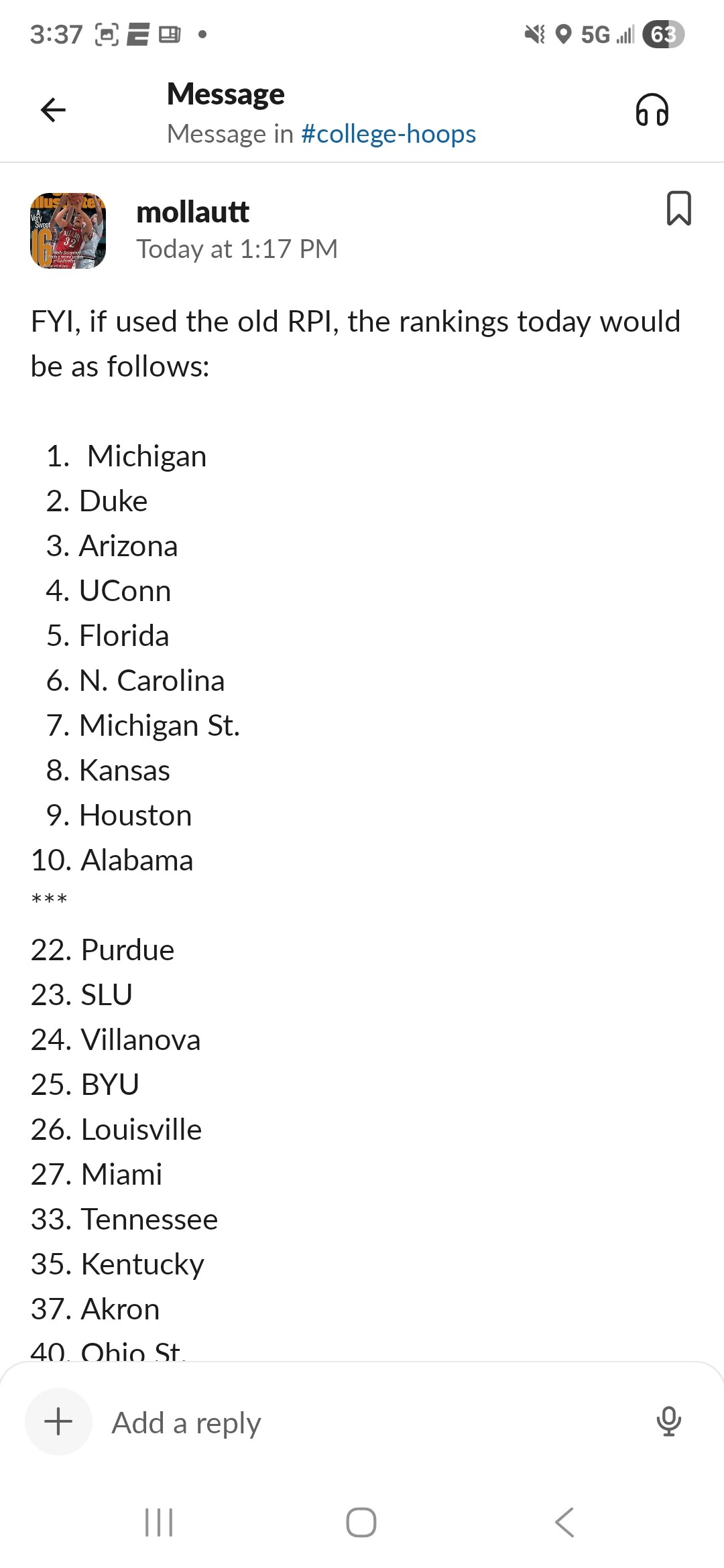 Despite “dropping” 1 rank, we went up a significant number of voters from 360 to 420, so was more a product of Arkansas jumping up and everyone getting closer.