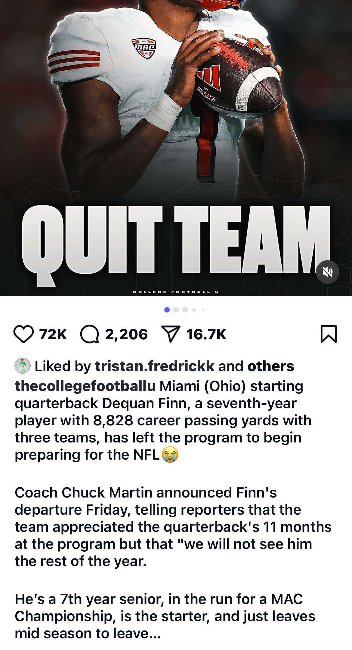 So. He just decided to quit on the team. Not much of a surprise. I will always remember him in that hideous Bearcat Black uniform he never wore into battle for us.