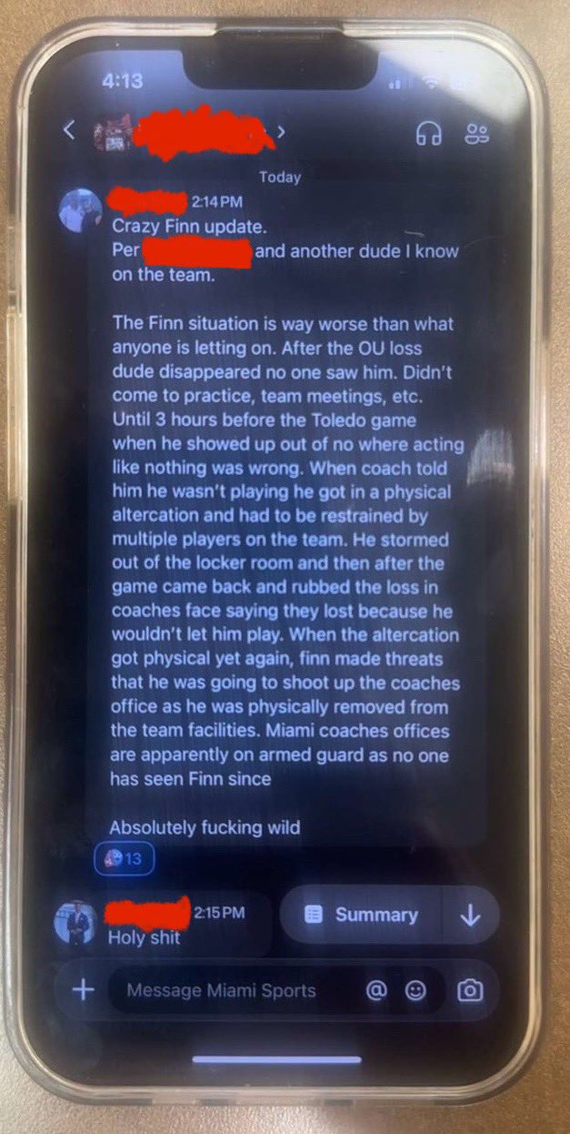 Iāve obtained exclusive Gunlock security footage of Finn showing up right before kick against Toledo after disappearing for a week. Appears to corroborate the text message: