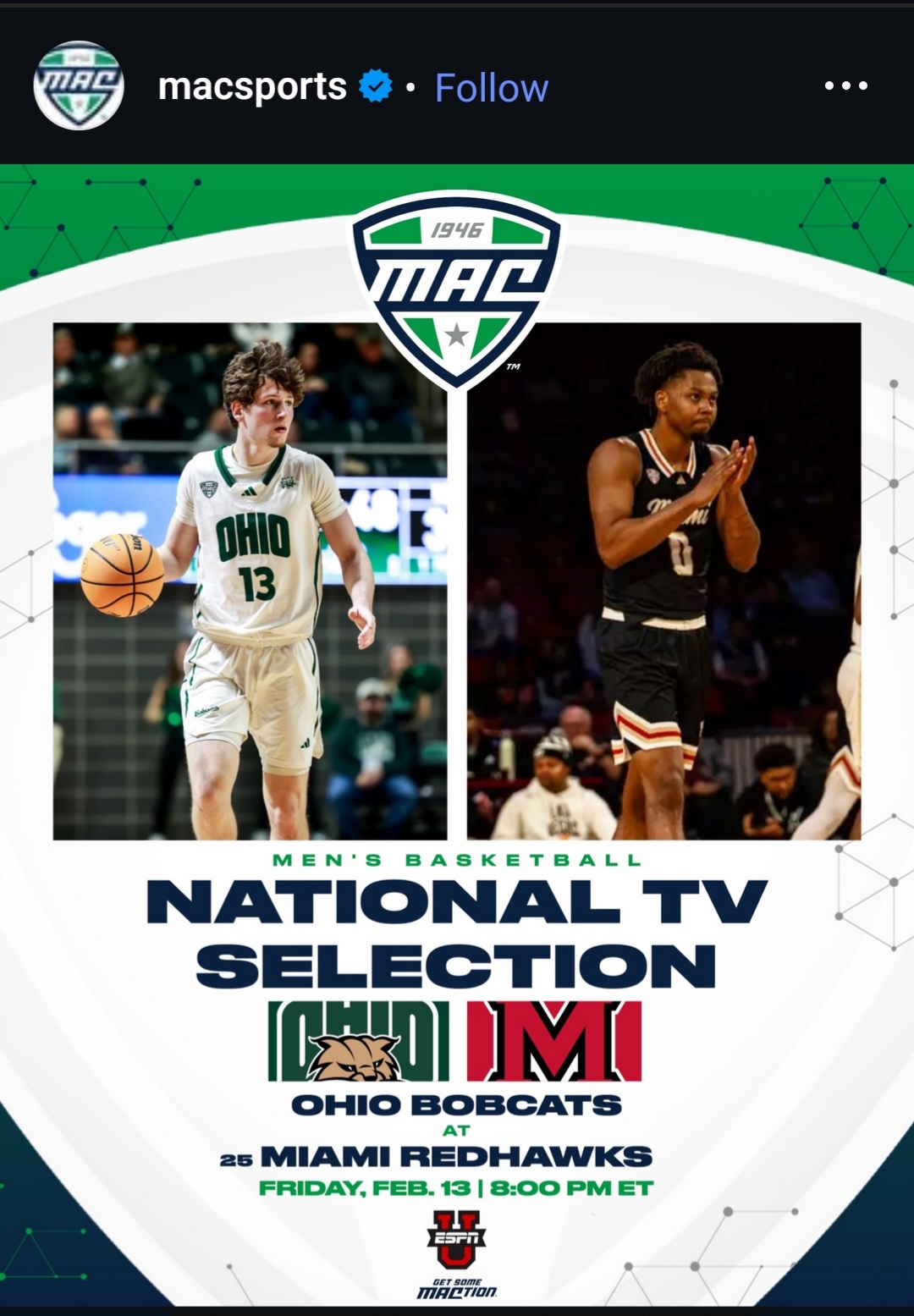 9:00 - Moved from 8 on ESPNU to 9 on ESPN.
