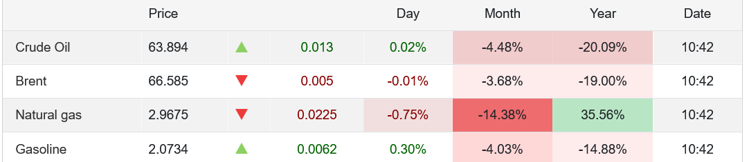 Cost of crude oil down 20% from a year ago.