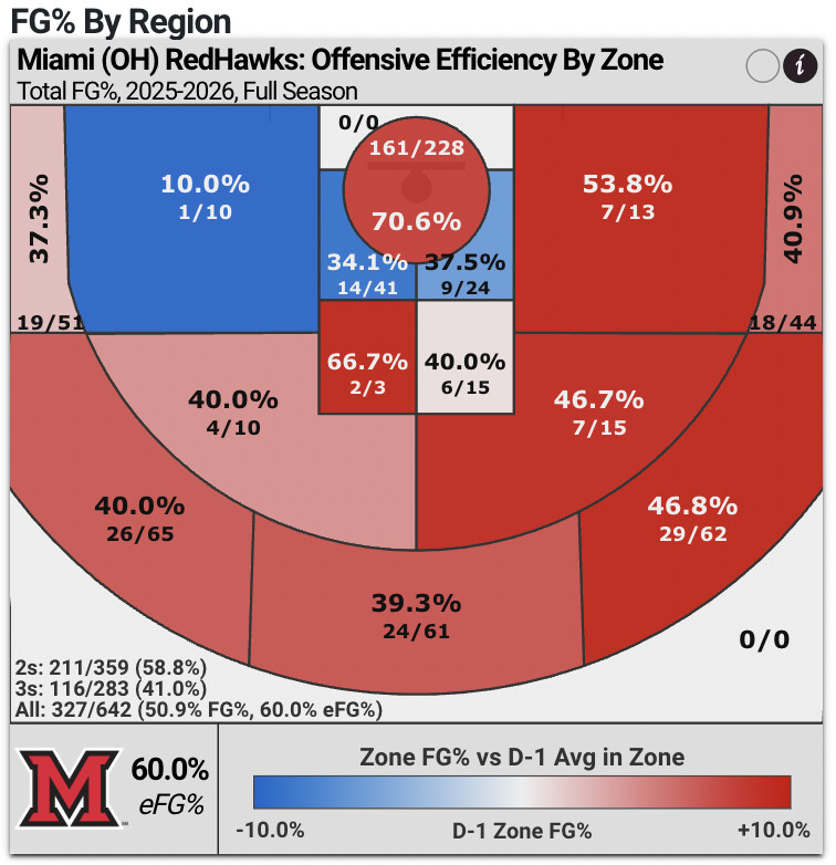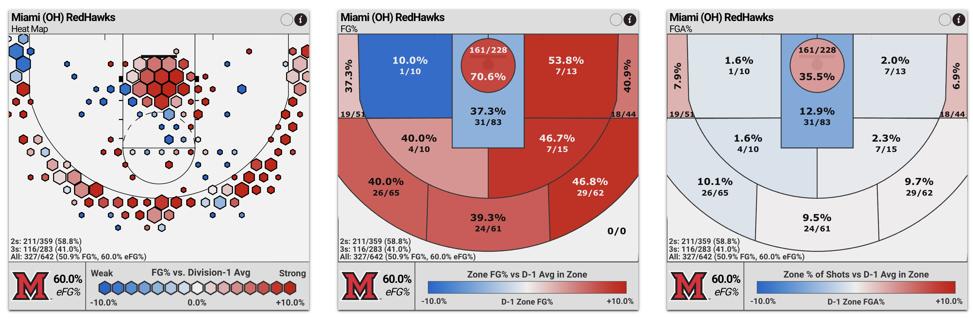 Miami women play Toledo at Millet immediately before the men take on Akron, so a full afternoon of Miami basketball!! And this is for Jive, although he almost certainly has these graphics and numbers showing why Miami is the top shooting team in basketball!