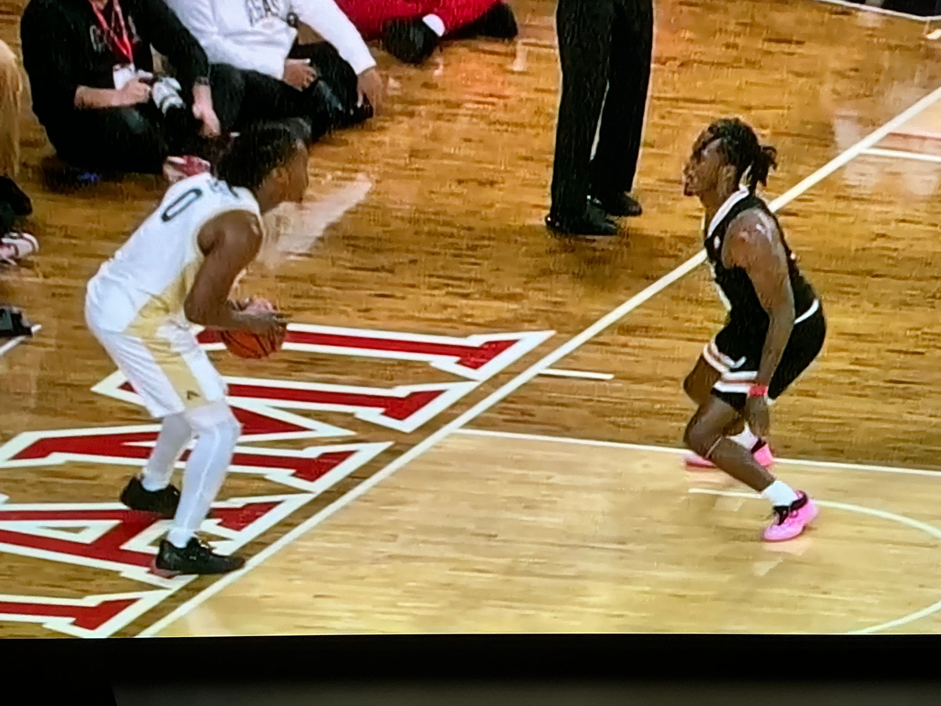 Additionally, teams can choose to skip the white lines and just have alternating colors to mark the playing court which some teams do. On those courts, the throw in violation on Akron wouldn’t have been called since there would be no line to step on.