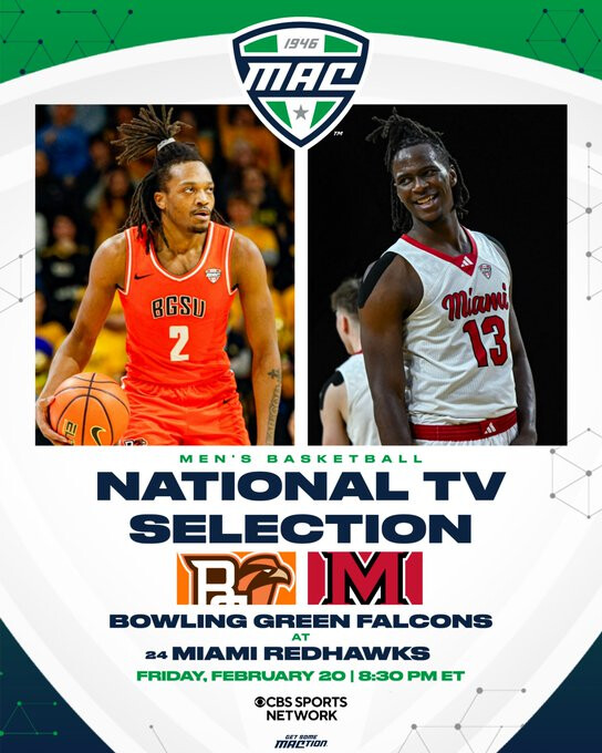 Miami’s game against BG has been flexed to a 830pm tipoff on 2-20-26 on CBSSN.