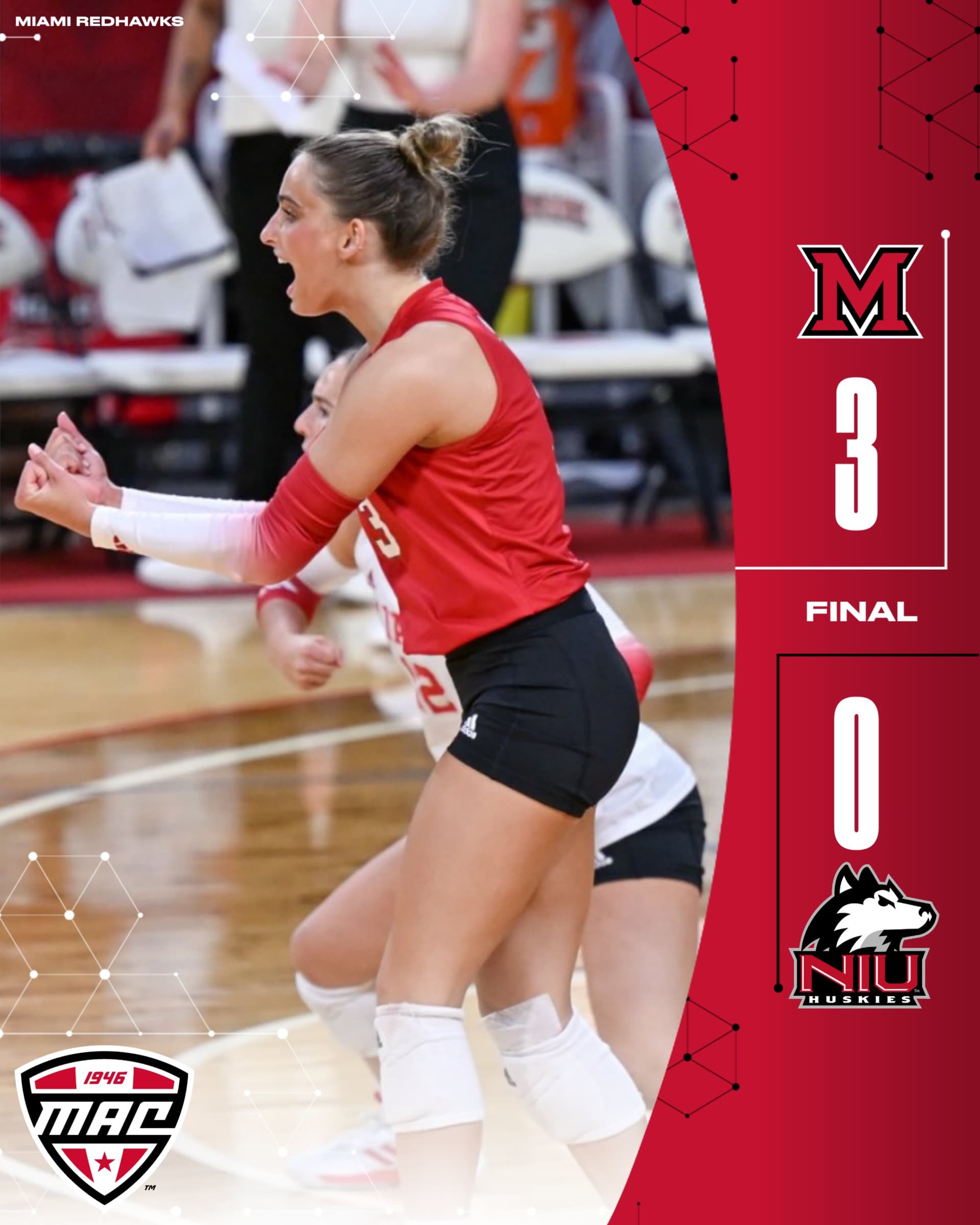 LAST NIGHT WARMING UP FOR A WEEKEND OF MIAMI KICKING NIU ASS, MIAMI’S VOLLEYBALL TEAM BEAT NIU 3-0!