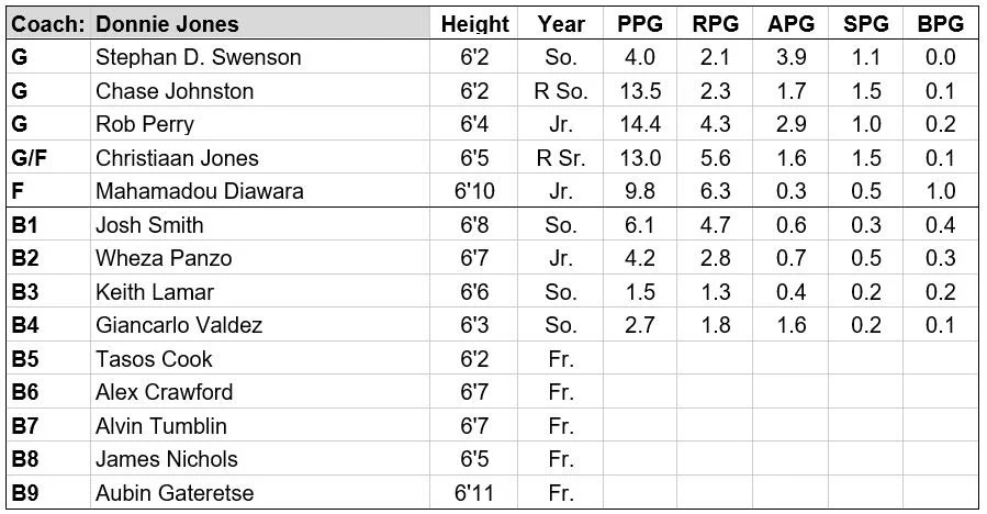Key Returners: Rob Perry, Christiaan Jones, Chase Johnston, Stephan D. Swenson, Mahamadou Diawara, Josh Smith, Wheza Panzo