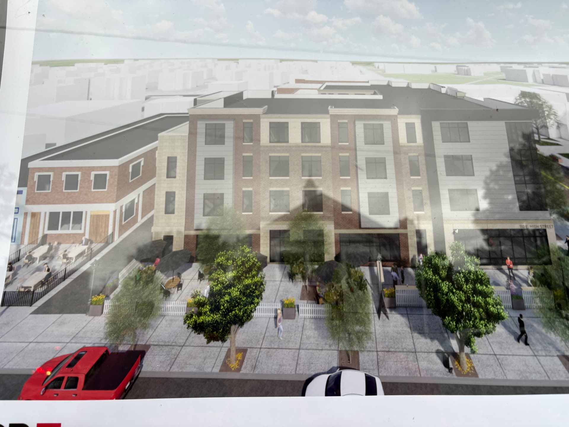 So it looks like they are finally going to develop the corner of High and Poplar where Folletts was. And for the record, I used to love going in Folletts. But here is one of many pictures now in the windows. No construction dates given. Looks like mixed use- retail on the first floor and apartments above. I stood in the rain just now taking this picture so you all better appreciate it! ![]()