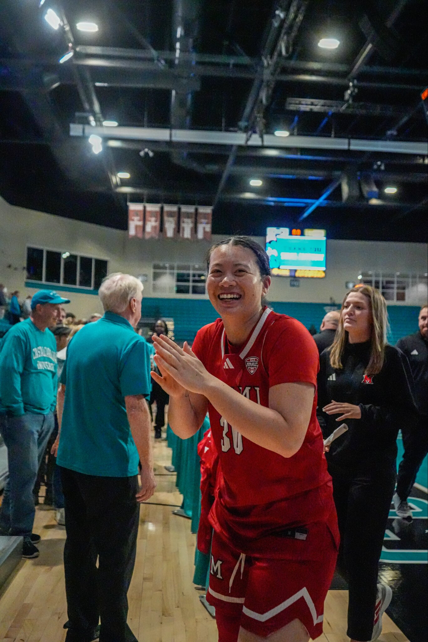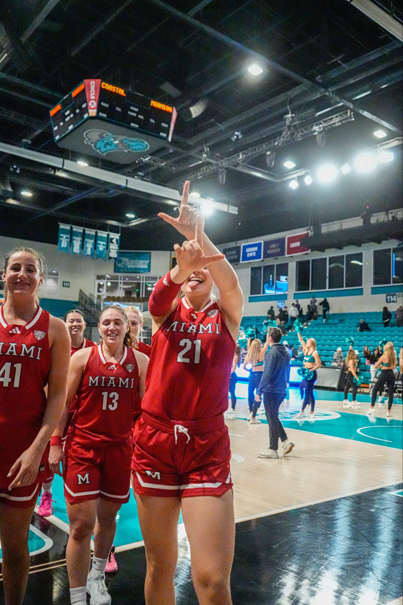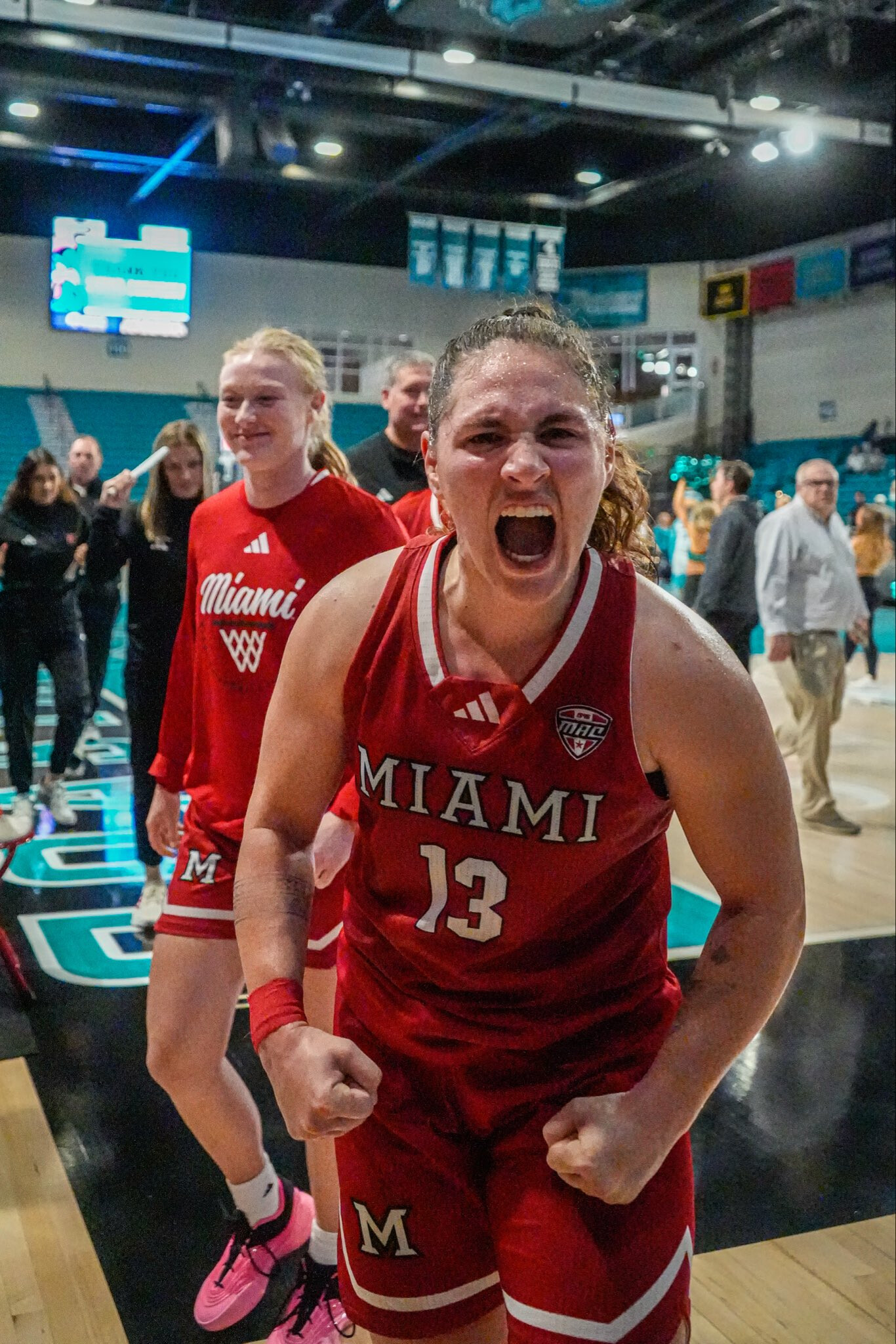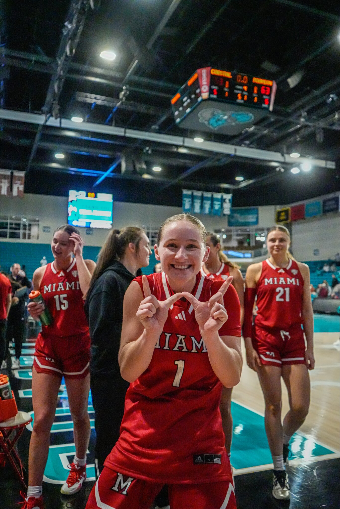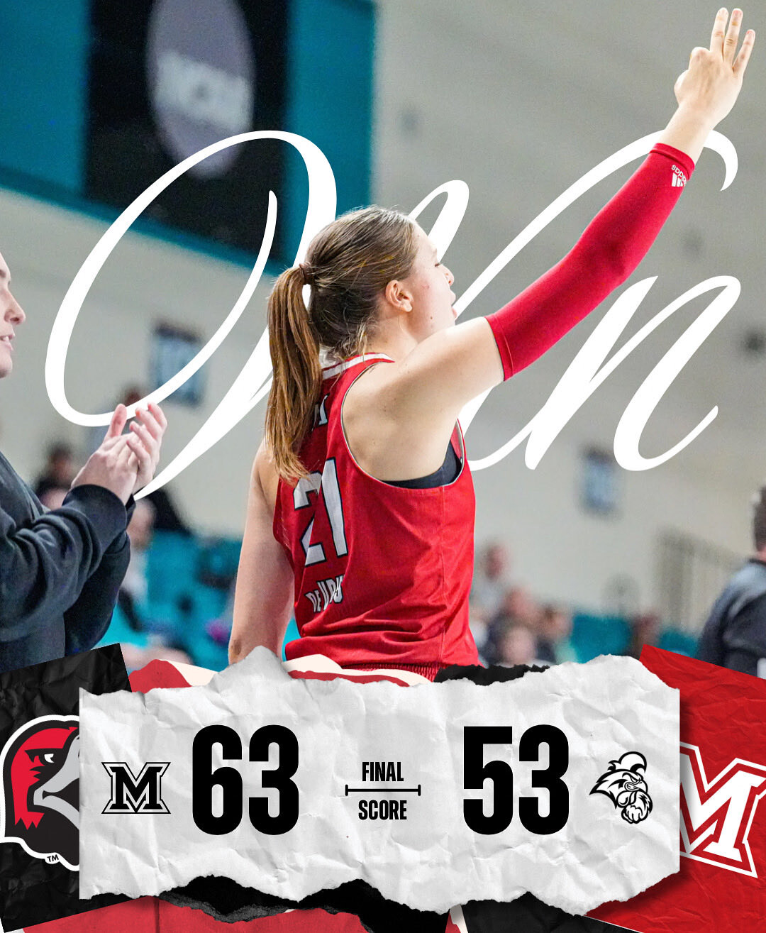 Miami wins! 63-53! Singer with 16, Scalia 15, Jurjo 11, Tretter with 11 boards!