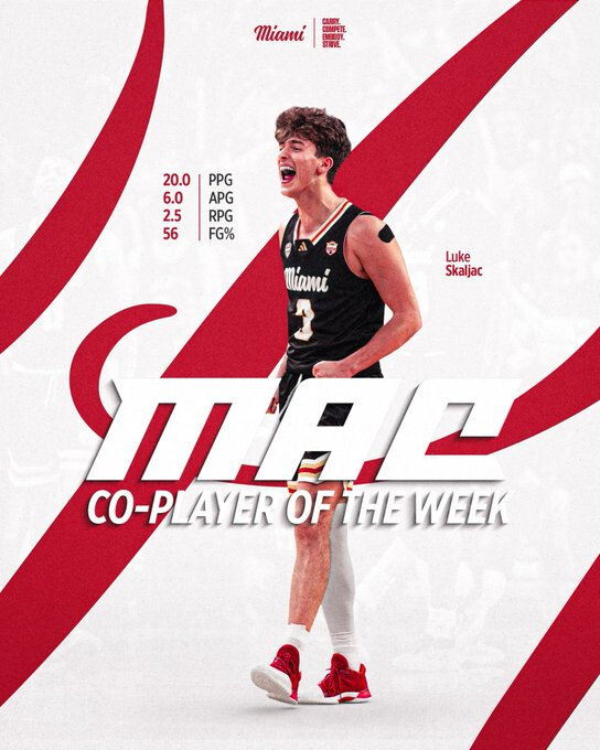 Well deserved. Per EvanMiya.com Luke is now ranked 5th in the MAC in their offensive performance rating and top 10 overall.