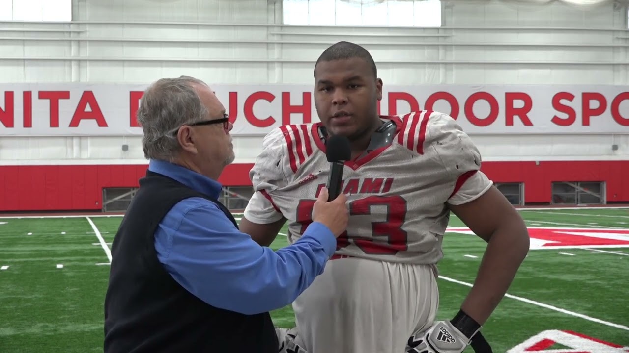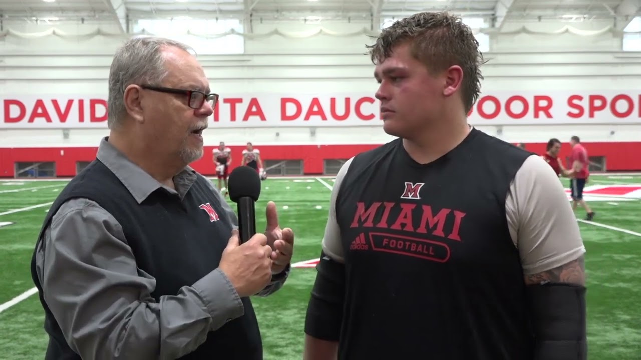 Two things about Caleb. He is an intelligent, articulate student-athlete. A real leader on and off the field. Very proud that he’s a Miami Man. Also his body has changed–he is slimmer–the baby fat is gone. He’s a rock.Look forward to him pancaking d linemen. The RB’s are going to find huge holes this year. Going to be a dominate O!