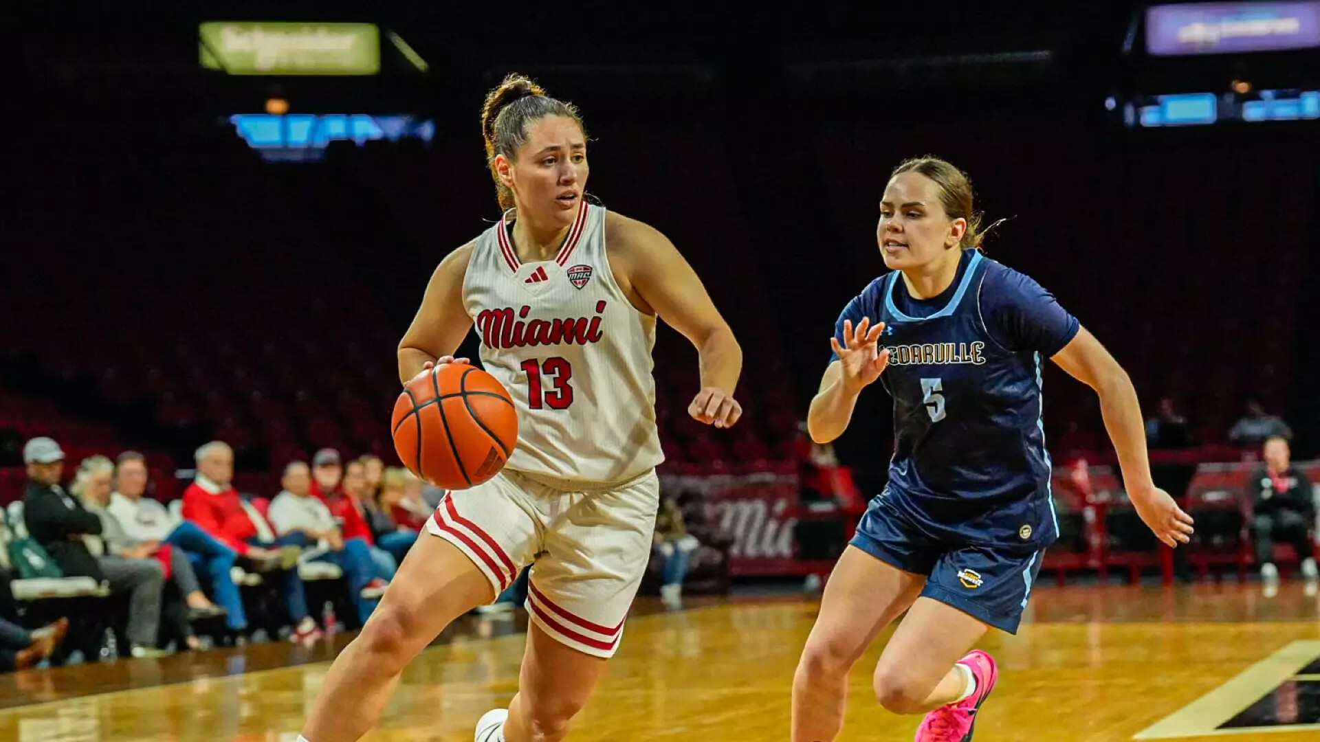 Miami 88 Cedarville 49 final score. Tretter with a double double 18 and 10. Miami now 2-0